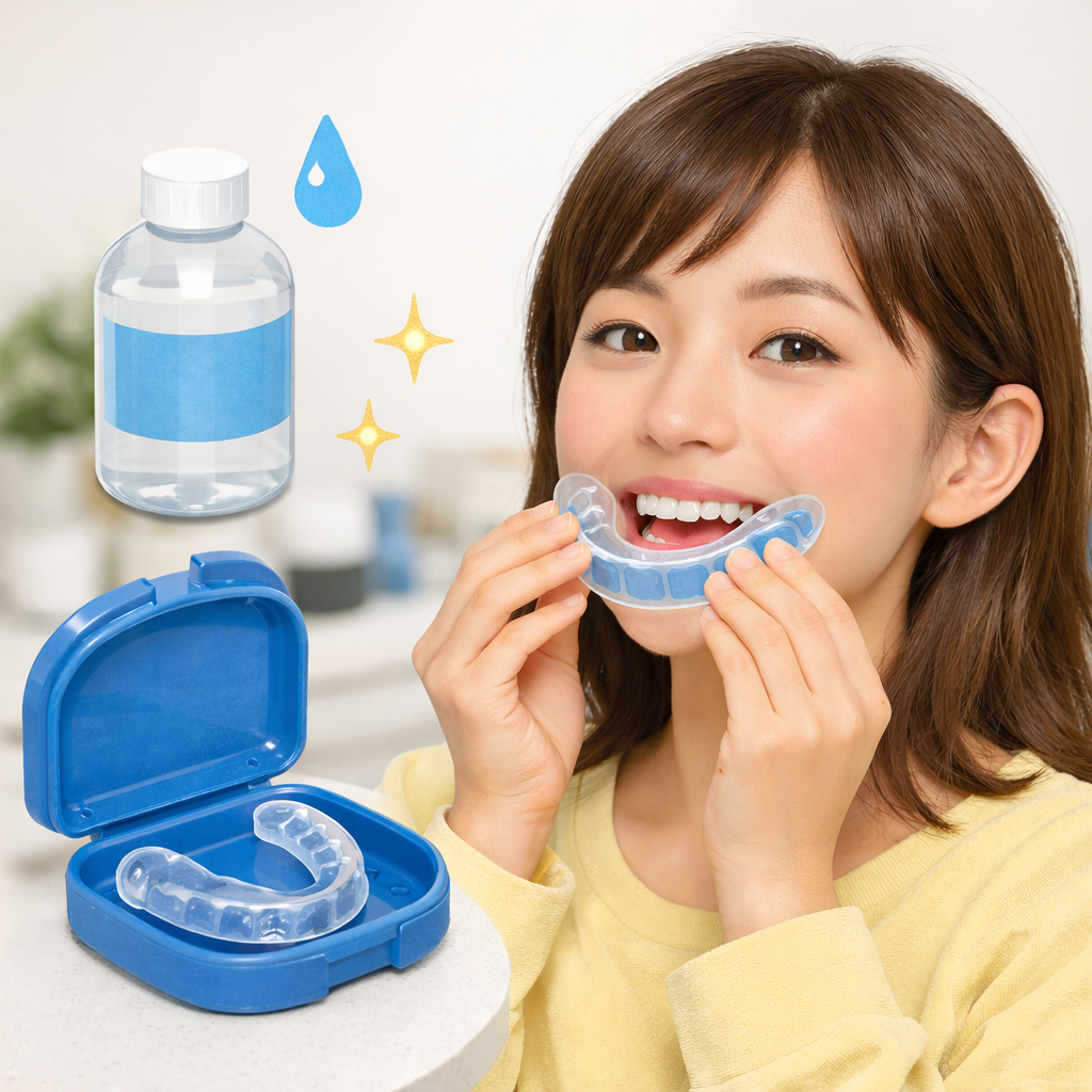 ホワイトニングをする方にあわせて専用のマウスピースを作成します。薬剤をつけて装着するホワイトニングです。