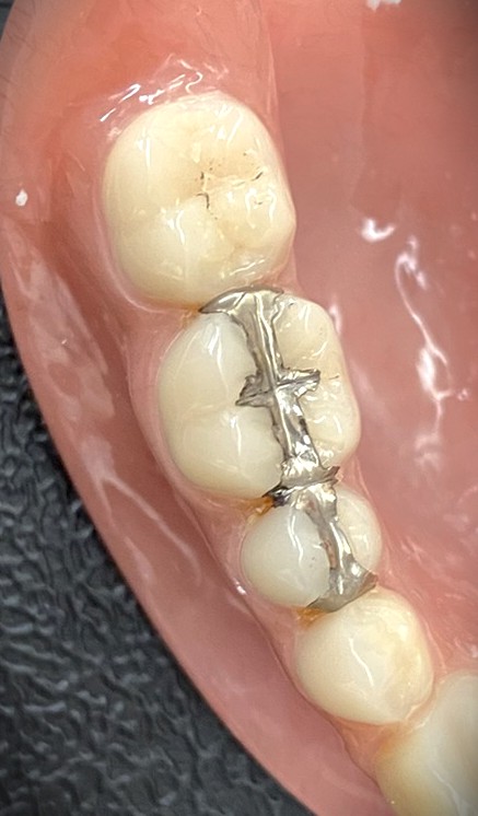 金属製のインレーは強度が高いので、噛み合わせの力にも十分耐えられます。