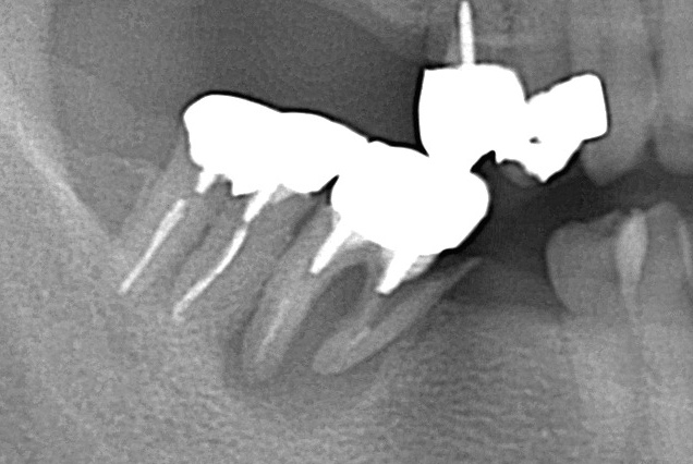 このような歯に虫歯が再発した場合、歯根の周囲に膿がたまったりしていることがあります。