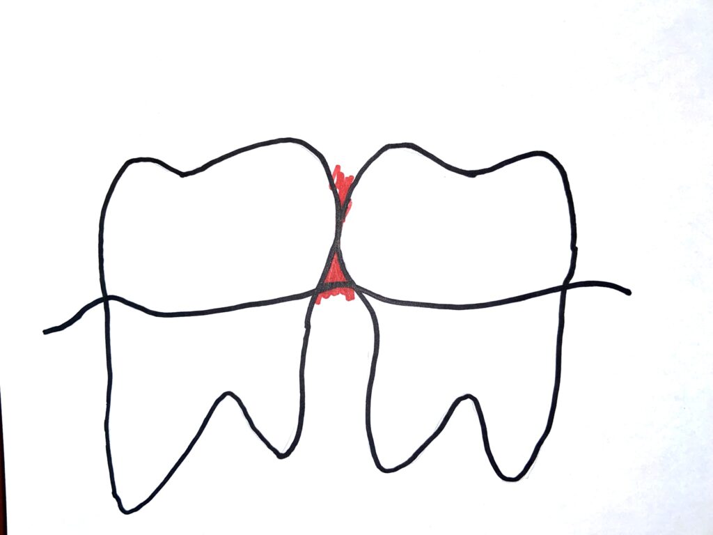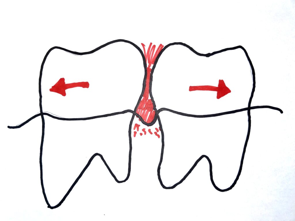 今回の患者さんでは、食べかすがたくさん詰まっていたため、すでに歯と歯の間が広がってしまっている状態でした。この隙間は食べ物が入り込みやすくなり、悪循環を招きます。
