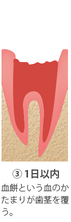 ① 抜歯窩に「血餅(けっぺい)」ができる