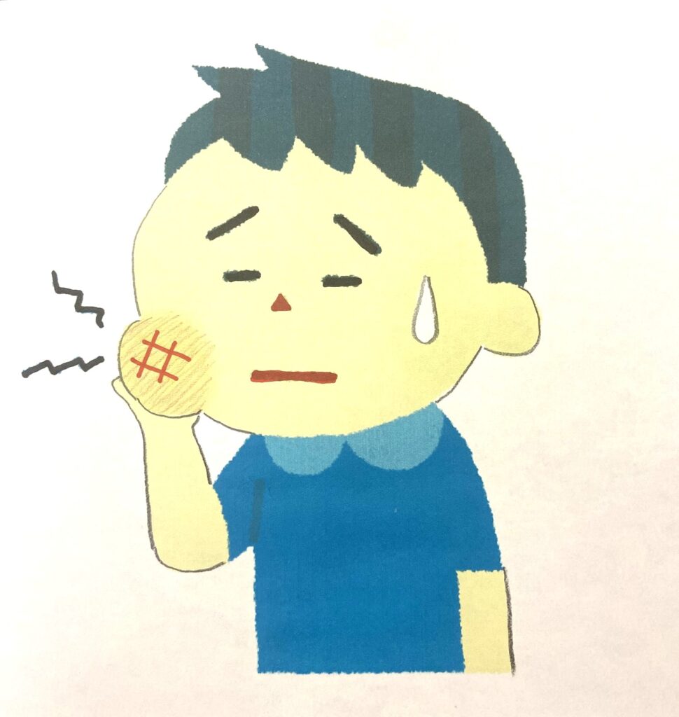 そうすると噛んだ時痛みや、炎症が急性化するとズキズキとした強い痛みが出たり、顔が腫れてしまったりすることもあります。