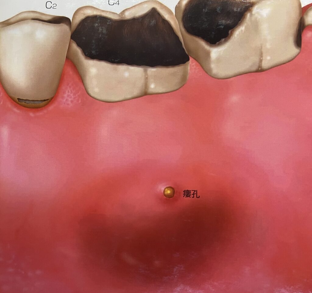 根の先に膿の袋ができると、その部分の歯茎が腫れて膿が出たり噛んだ時の痛みが出ます。
